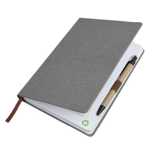 Stylish A5 notebook with recyclable paper pen attached to notebook