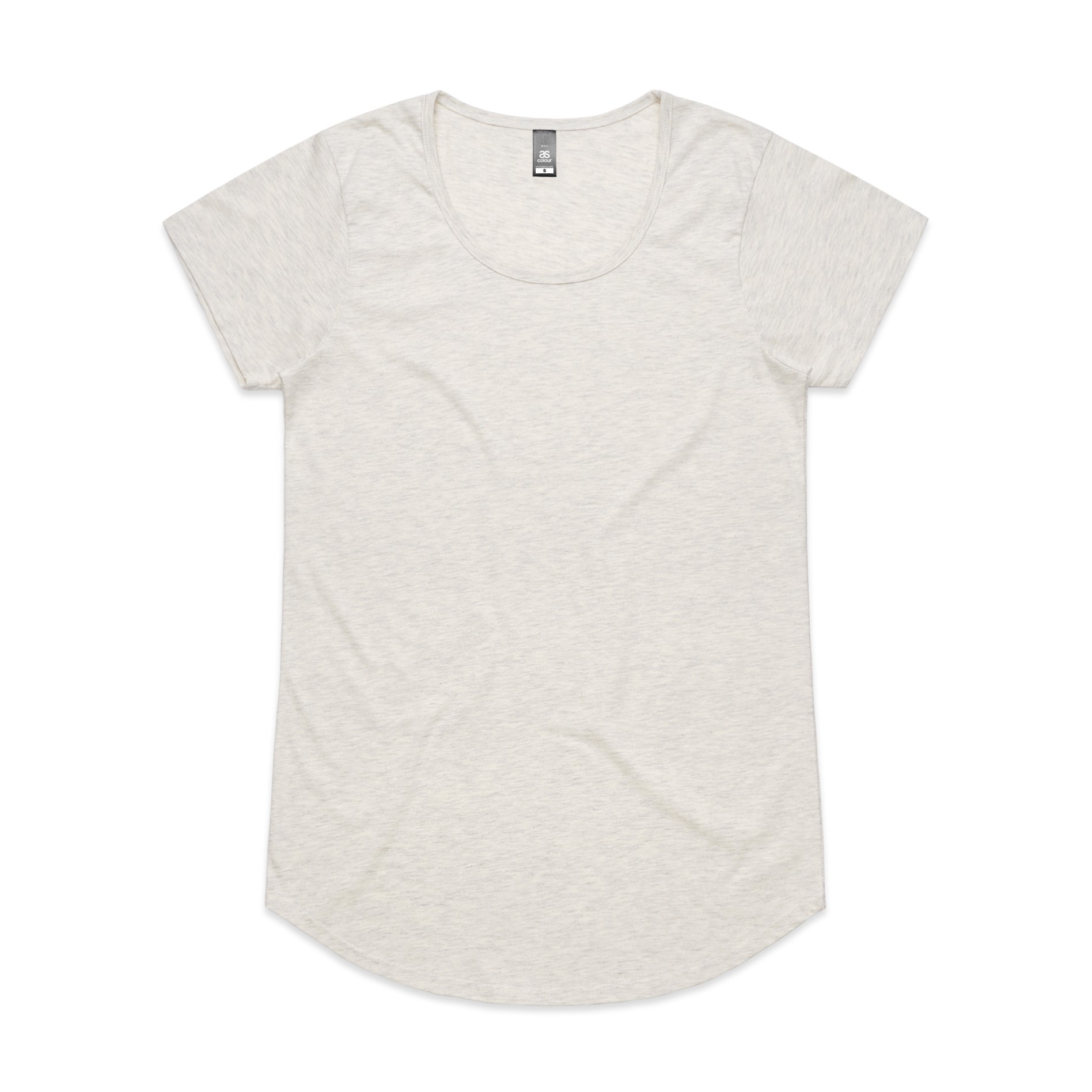 Self-fabric binding on neck, side seamed, double needle hems, preshrunk to minimise shrinkage