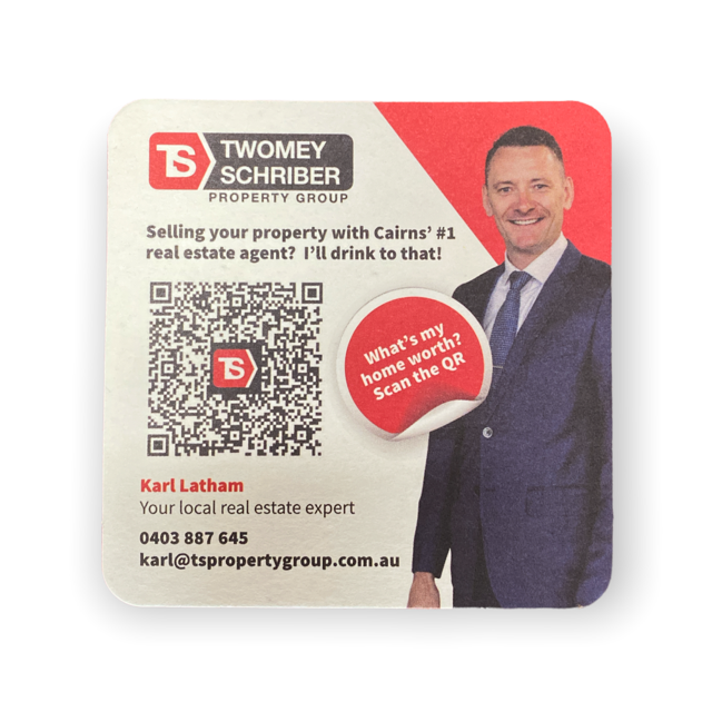 The Card Board Coaster is a classic promotional product. It’s made from 390gsm Coaster Board which is super absorbent and actually works. How many times have you used a coaster and your drink still drips? Low cost, high impact. Don’t just print your logo! Get the user to engage. Throw a QR Code on them and see what happens. Enter a comp? Contact me? View a website or a particular page. A simple cost effective way to get your message across that can be measured.