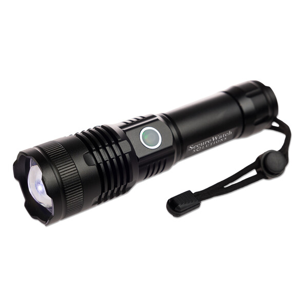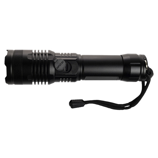 The Lumi Rechargeable Torch, your eco-friendly and powerful lighting solution. Crafted from recycled aluminium, this torch features a bright SMD LED bulb with a brightness level of 720 lumens, capable of illuminating objects up to 300m away on the narrowest beam setting. Powered by a rechargeable Li-Ion battery (18650, 1200mAh), the torch comes with a black wrist lanyard for easy carrying and a black Type A to Type C cable for convenient charging. Packaged in a sleek black magnetic close gift box with an instruction sheet, the Lumi Torch is ideal for both everyday use and as a thoughtful gift. Please note, the torch is water-resistant but not waterproof and should not be submerged.