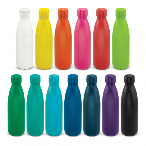 The Mirage Powder Coated Vacuum Bottle is a trendy 500ml double wall, vacuum insulated stainless steel drink bottle with a stunning powder coated finish. It will keep drinks cold for 24 hours or hot for up to 12 hours. Mirage has a powder coated screw on lid as well as a classic stainless steel option. The bottle and lid can be mixed and matched in any colour combination from the standard colours. Up to five different colour combinations are included in the price and more are available for an additional charge. Mirage is BPA-free and laser engraves to a shiny steel finish. It is presented in a black gift box and an optional gift tube is available on request. This product is not dishwasher safe and handwashing is recommended.