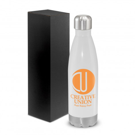The Mirage Vacuum Bottle is a trendy 500ml double wall, vacuum insulated stainless steel drink bottle which will keep drinks cold for 24 hours or hot for up to 12 hours. Mirage has a secure screw on lid and the bottle laser engraves to a shiny steel finish, except for the silver bottle which engraves to a natural etch. Mirage is BPA free and is presented in a black gift box or an optional gift tube. This product is not dishwasher safe and handwashing is recommended.