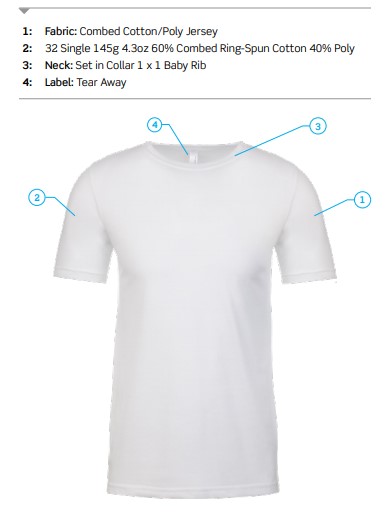The Next Level Mens CVC Crew Tee is a GREAT t-shirt. Cotton rich with some poly to keep shape and colour. It’s one of the softest, nicest to wear tees in the market. An exceptional crew neck tee that provides style, quality and comfort.