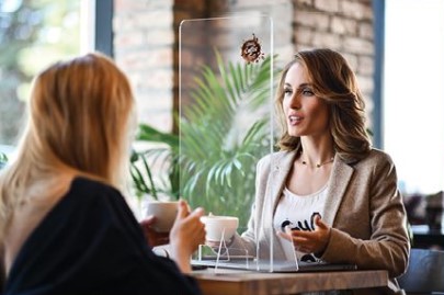 Self standing, quick to assemble personal protection screen to help maintain social distancing. Made locally from 6mm clear acrylic. Easy to keep sanitised and clean. These free standing guards decorate beautifully and can be easily placed on a desk between yourself, staff or customers to help prevent the spread of germs through exposure to coughing, sneezing and sprays.