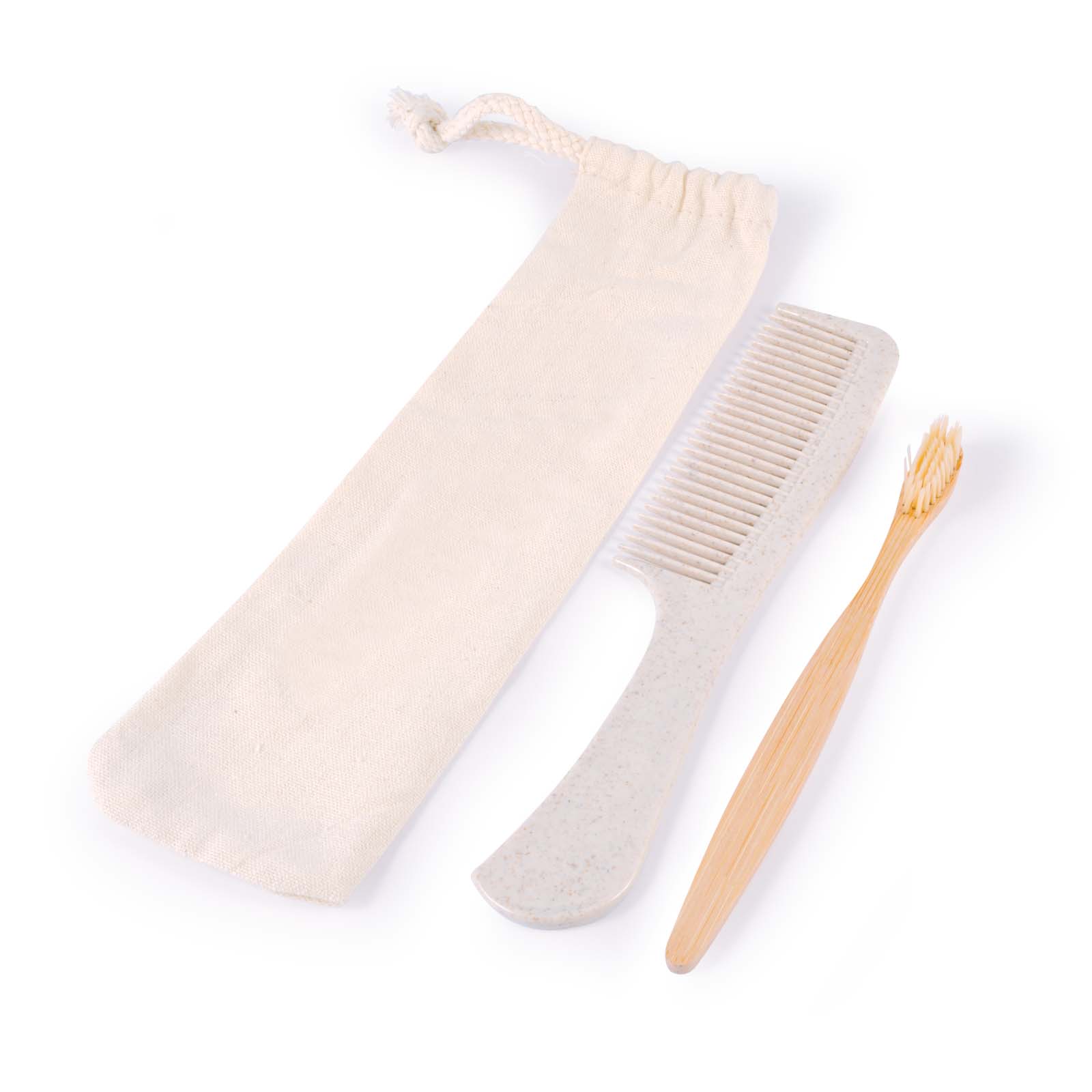 Material: Pouch: Calico, Toothbrush: Bamboo, Comb: Wheatfibre
