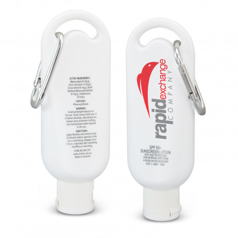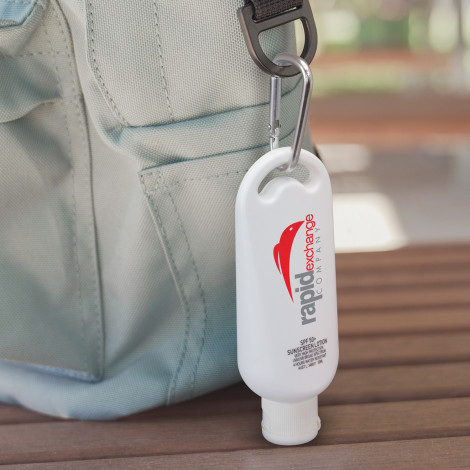 SPF 50+ Carabiner Sunscreen 50ml shows you care about your brand AND your clients. Keep safe in the great outdoors. What a fantstic message. The bonus is your brand stays with someone outside of the office which leands itself to brand exposure to more than just your client.