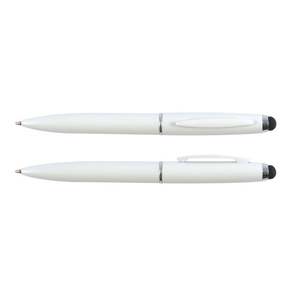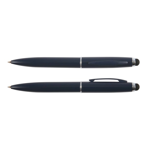 The Starion Pen is a matte finish, brass coloured ballpoint pen with a black stylus and silver accents. It can be printed, digital colour printed or laser engraves to a mirror finish. High quality. Low price.