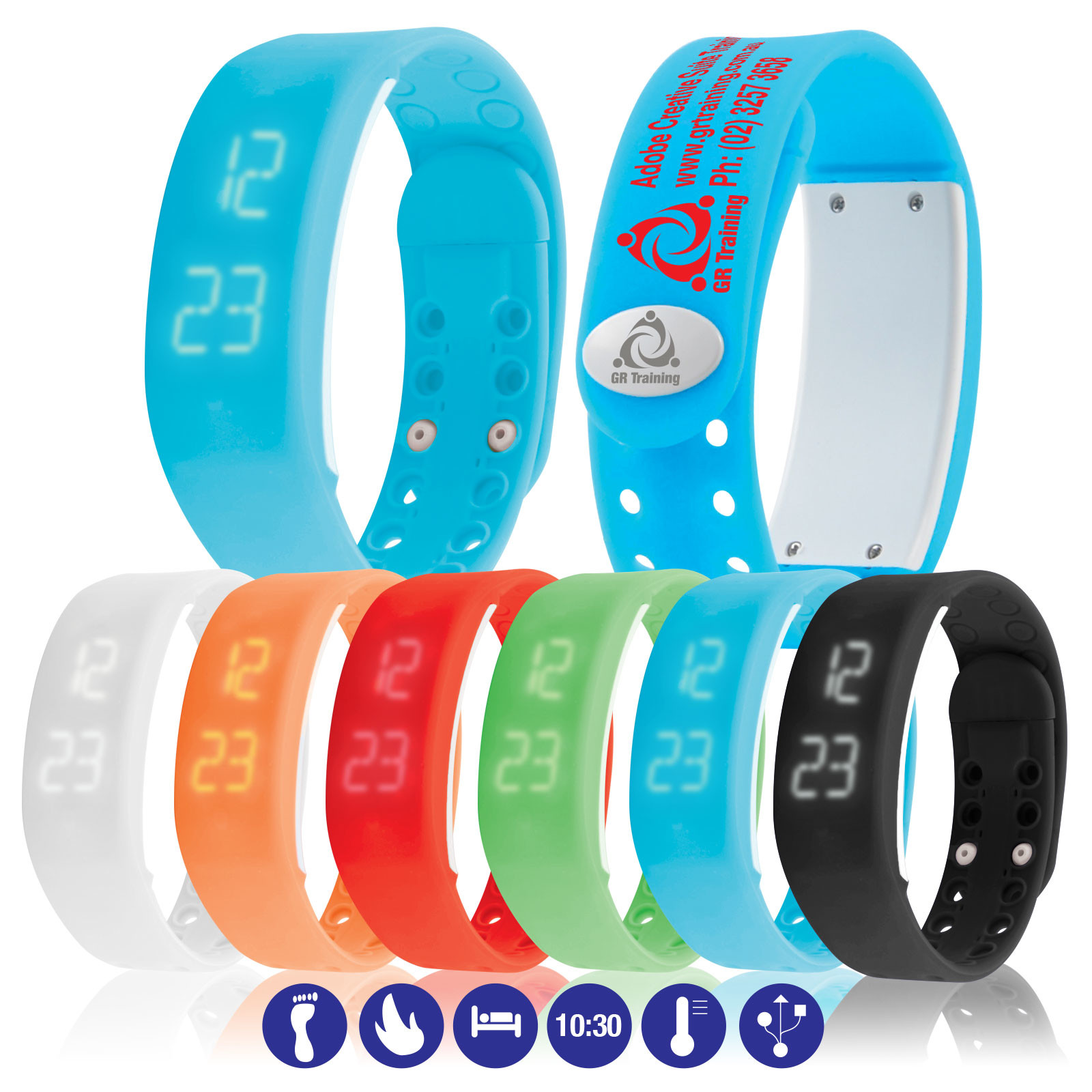 Tracking steps, Active Time, Calories, Time display, Temperature display, Silent wake alarm.