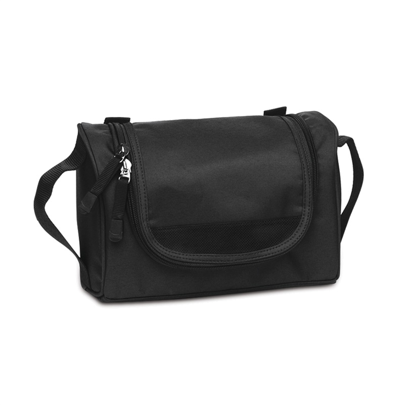 Large main compartment wtih double zip pullers. Internal zippered mesh pocket under flap.