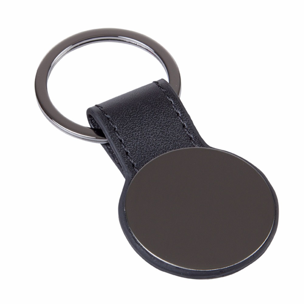 PU keychain with contrast stitching and black badge. Supplied in black box.