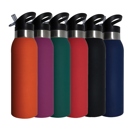 500ml BPA free vacuum insulated stainless steel double wall drink bottle, high quality rubberized finish that is extremely comfortable to hold, and laser engraves to natural silver colour, has a secure screw on lid with carry handle and flip out drinking nozzle with drink straw. It is not dishwasher safe, handwashing is recommended.