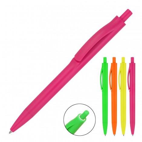Offering an excellent branded gift idea for a highly visible corporate campaign, the Xavier Matte Fluoro Ballpoint Pen features a comfortable push button, retractable 1.0mm fine tip – black ink pen. It provides an ultimate user experience and is available in 4 matte fluorescent colour options.